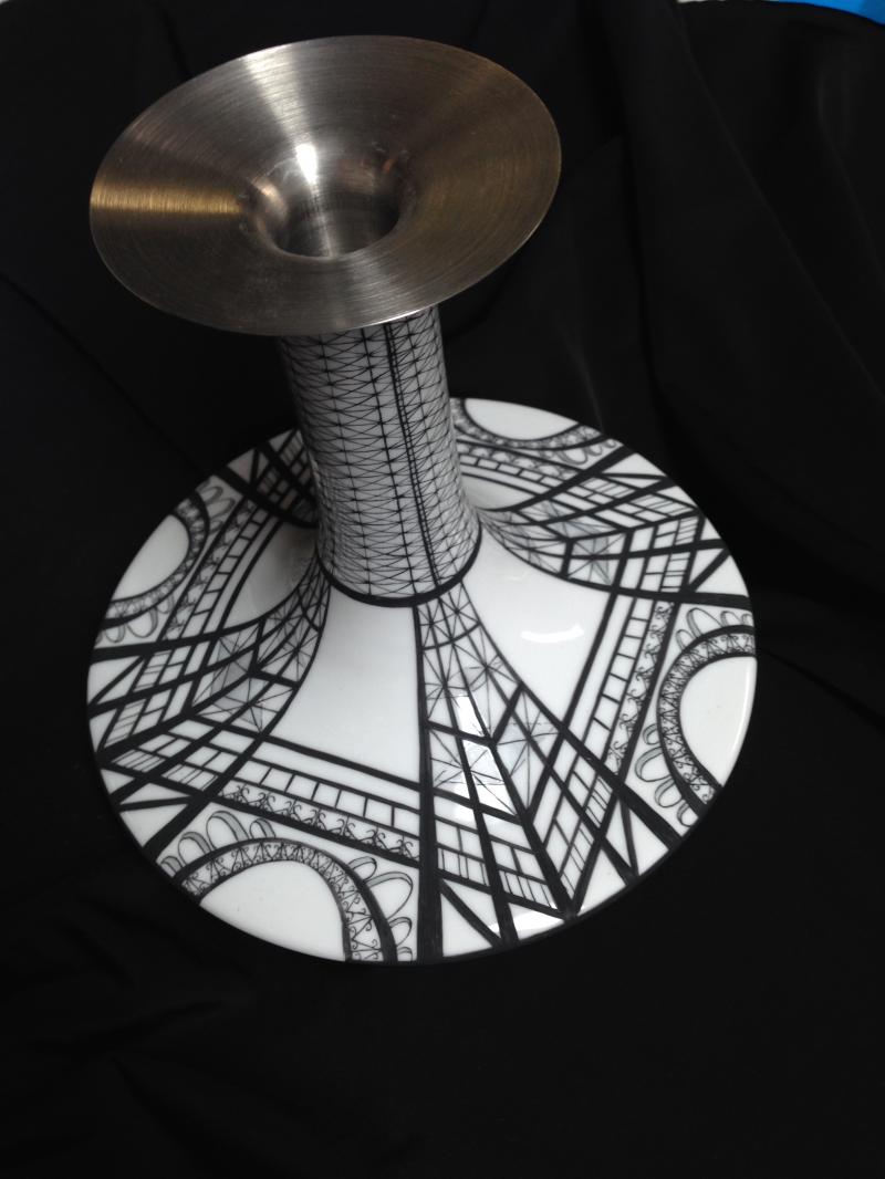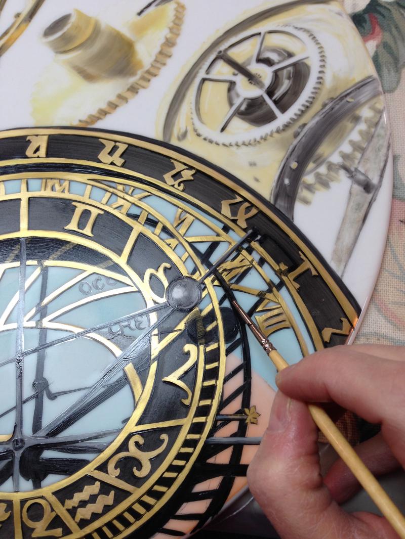 See the examples below, illustrating how Black Satin can be used. Mary mixes it with open medium like all her paints, and simply uses it where she wants a deep, matte black. Sometimes large areas, but usually as a good contrast next to a lustre. Black Satin also makes a super pen ink. Mix a bit more open medium with it until it will run with your pen. Fire at any porcelain paint temperature, like Cone 017 or hotter.